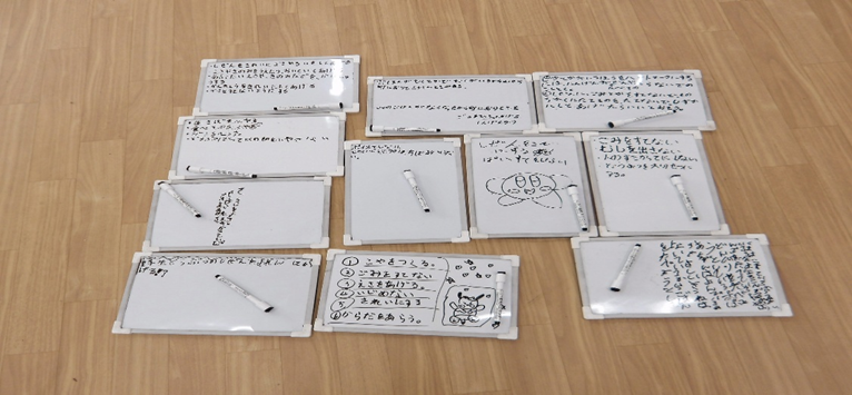 ヒントの絵の2枚を見ながら、自分には何ができるかを書いていきます。いつもこの時間は、ペンの走る音だけが聞こえる静かな時間となります。