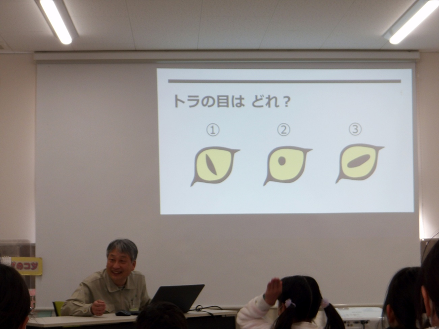 続いて、さまざまなクイズを交えながら動物のお話をしてくださいました。