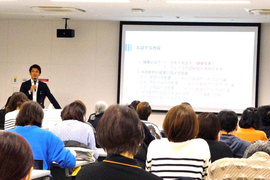 神戸市中央区文化センターにおいて、谷口優先生を講師にお迎えし、「伴侶動物と暮らす人はなぜ健康なのか?」をテーマにセミナーを開催しました。