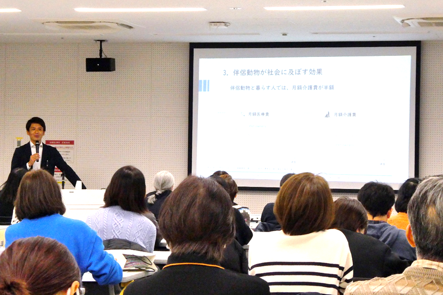 質疑応答では多くの質問が寄せられ、参加者からは「大変勉強になった」「データに基づいた話で理解が深まった」「ペットが人に与える良い影響を改めて知ることができた」などの感想が寄せられました。伴侶動物との暮らしについて考える、実りある時間となりました。