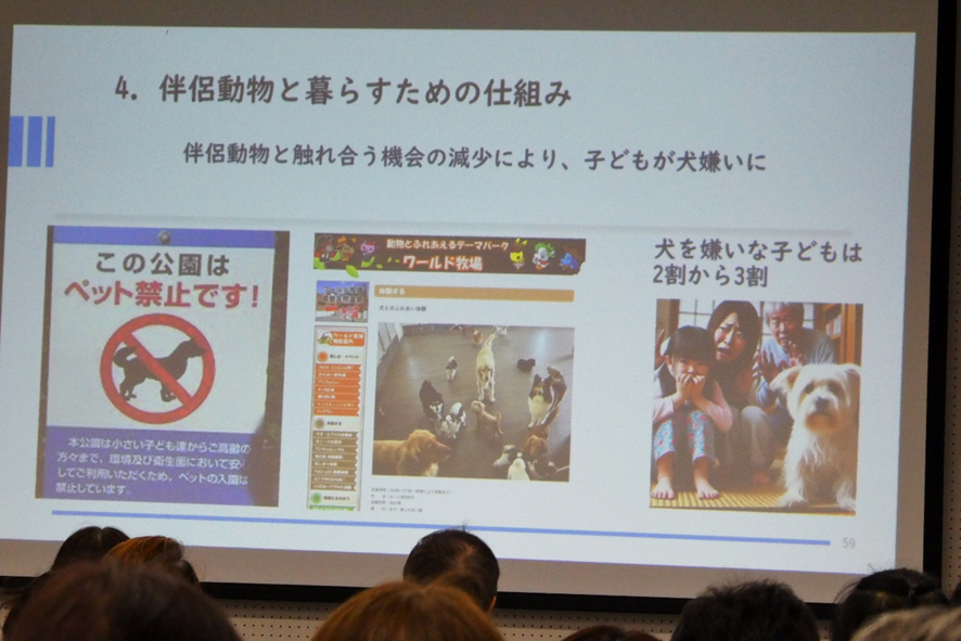 しかしながら最近では、そもそも伴侶動物と暮らしたいと考える人自体が減少しているという指摘もあり、その影響で子どもが犬と触れあう機会が減り、「犬が嫌い」という子どもが増えているという話題にも触れられました。こうした状況を踏まえ、子どもが犬と触れ合える機会をつくることの重要性が、改めて強調されました。