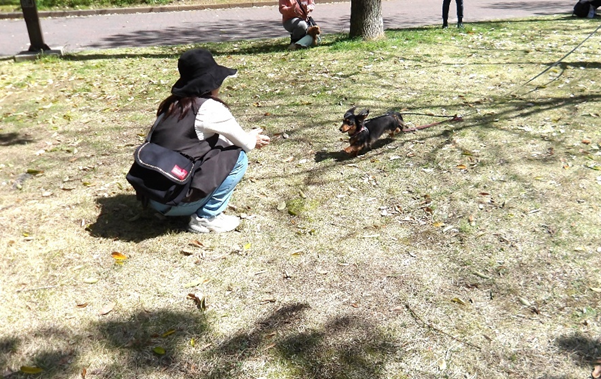 恒例の呼び戻しの要素の「おいでゲーム」もありました。飼い主さんが離れたところから名前を呼び、飼い主の元へ向かうというゲームです。一目散のわんちゃんもいれば、ゆっくりながらも一生懸命飼い主さんのところへ向かうかわいい姿が見られ、温かい雰囲気に包まれました。